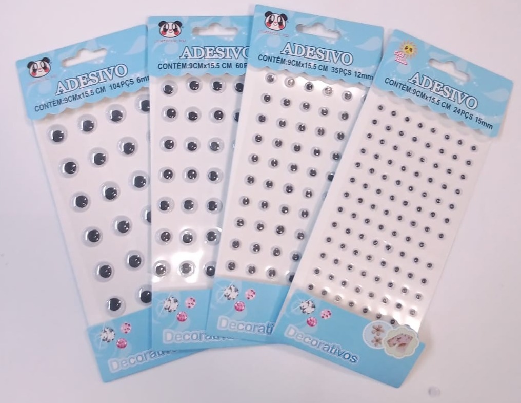 O Olho Movel Adesivo muito utilizado na confecção de bonecas, pelucias, desenhos, roupas artesanato e muito mais. Eles possuem uma base reta já com um cola para facilitar a aplicação em seus trabalhos artesanais.